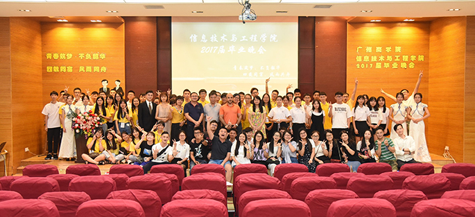 盛夏之季,太阳成集团tyc33455又将送别一届毕业生。为了让我院2017届毕业生带着大学时的美好回忆步入社会,太阳成集团tyc33455于6月23日晚在四教第一报告厅举行“青春筑梦,不负韶华;四载同窗,风雨共舟”2017届毕业生晚会。信息学院院长姜灵敏、党总支书记林俊杰、教师代表阿拉姆、各年级辅导员以及2017届全体毕业生出席了本次晚会。