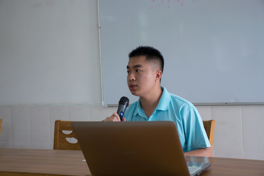 统筹组美味可口的午餐洗去了队员们的劳累,经过了短暂的休息之后,队员们在多媒体教室召开工作会议暨开幕仪式。会议伊始,服务队队长梁瑞聪为队员们讲解了未来几天的工作规划以及各项工作的详细要求。在队长发言完毕之后,服务队指导老师郑开勋上台讲话。他从安全、生活、纪律这三个方面强调了队员们应该要注意的事项,并强调到队员之间应该多交流,多互动,营造一个舒心愉悦的工作和生活环境。此次工作会议,让队员们对此次的暑期三下乡社会实践活动有了更清楚的认识,对未来十天的工作也有更加详细的规划。