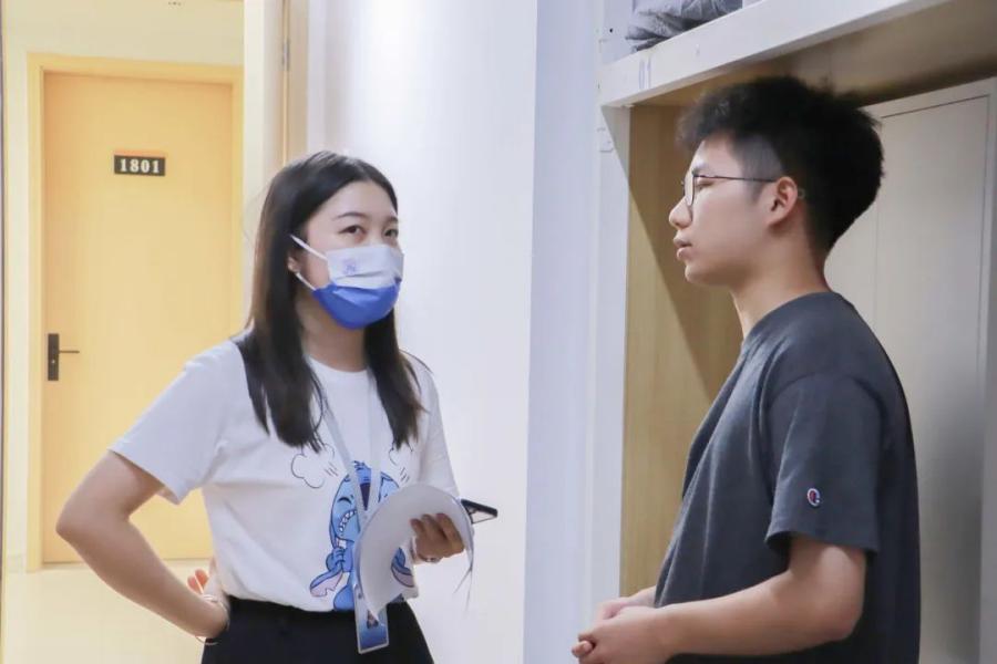 同时,辅导员饶宏玉细心叮嘱新生们注意宿舍用电安全、人身财产安全等问题,提醒他们做好疫情期间的自我防护工作,希望新生能多与辅导员联系沟通,遇到问题及时与辅导员沟通反馈。新生们纷纷感谢老师们的关心,并表示会尽快调整状态融入大学生活,认真做好规划和疫情防控常态下的个人管理,以积极进取的心态、健康的体魄迎接大学生活,不负老师的殷切期望。