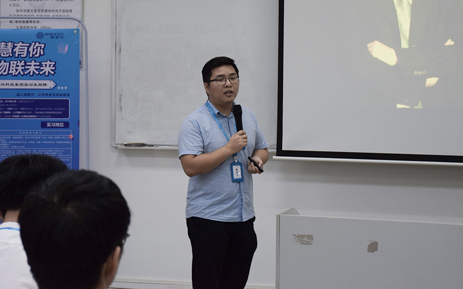 宣讲会上,马经理针对当前的就业形势与就业政策,对我院往届毕业生的就业情况作了简单的介绍,并且为准毕业生当前就业局势进行详细的分析。随后,马经理向学生们介绍高新兴科技集团的发展历史、研发方向以及公司文化。他还用一段视频向学生们展示高新兴科技集团的改革创新历史,并提出“用人格创造发展前景与学生们作了详尽的产品” 的经营理念。其次,马经理从企业员工培养模式、企业当前发展状况及分享,让学生对其公司有近一步的认识。最后,马经理详细介绍其公司要招聘的职位,并表示他们会提供线上与线下投简历的渠道,希望学生们把握住机遇,找到适合自己的工作岗位。