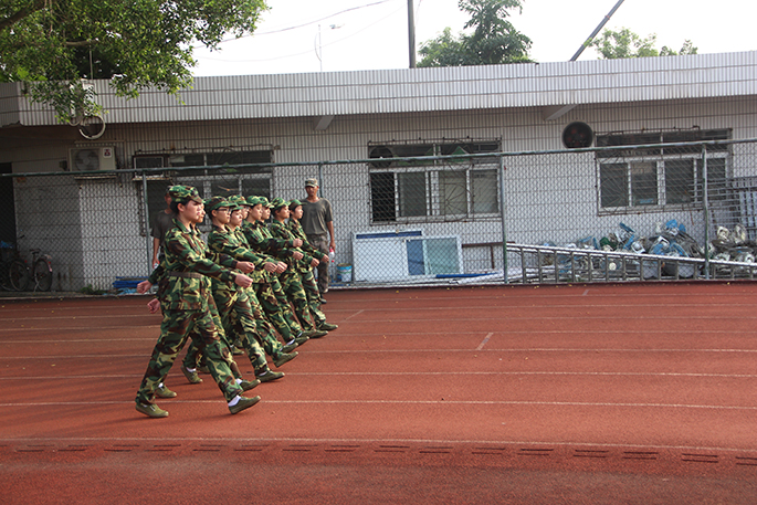 “原地踏步走,一二一、一二一......”伴着教官的口令,操场上响起了新生们铿锵有力的踏步声。在炎炎烈日下,新生们湿透的衣服和认真的神情都显露出坚韧不拔的精神。长时间的辛苦训练后,新生们等到了休息时间,脸上终于露出了灿烂的笑容;教官们严肃的神情也慢慢变得亲切,他们教新生们唱军歌,操场响起《强军战歌》,此时场景令人振奋不已。