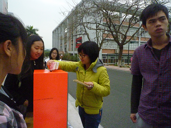 虽然爱心募捐活动已经到了第三天,但同学们爱心传递的力量依旧没有消减,反而愈加强烈。每每走在校道上的同学们在经过募捐摊位时,都会不约而同地前来募捐,并送上最诚挚的祝福。留言板上那帖满着一份份爱的祝福,足矣诠释大家的用心所到之处。我们都热切希望海燕同学能早日康复归来。工作人员和志愿者们仍在岗位上为海燕同学尽自己微薄的力量,坚守的努力也吸引了不少的老师,甚至还有外教老师。外教在了解事情的概况后毫不犹豫地奉献了自己一份爱心。爱心的传递无国界,友爱另我们的校园生活更加美丽,令我们的增院更加和谐!