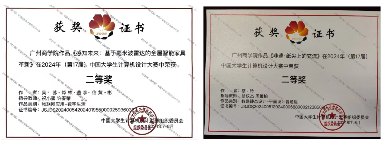 获2024年(第17届)中国大学生计算机设计大赛国赛二等奖2项,省赛二等奖3项和三等奖5项