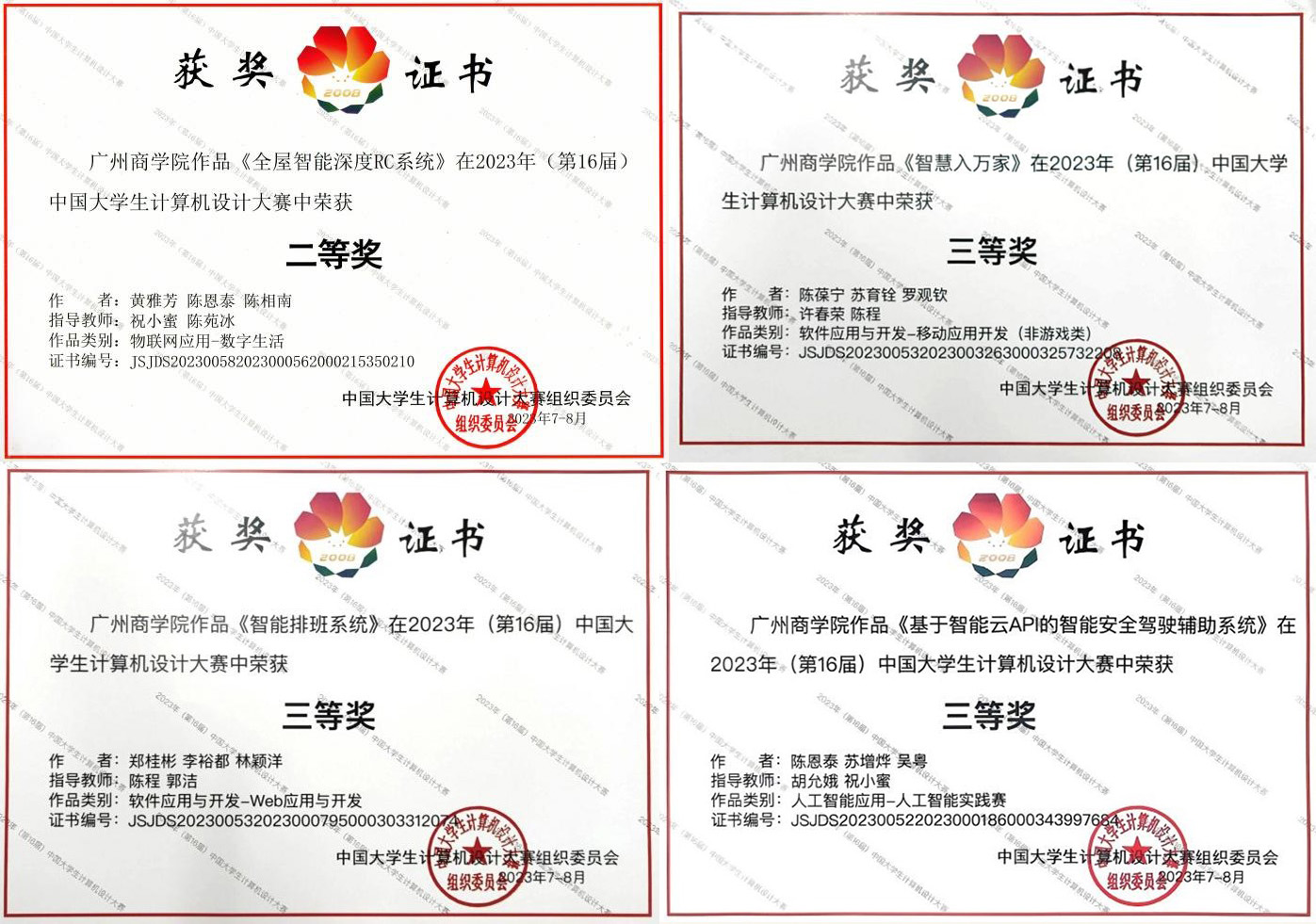 获2023年中国大学生计算机设计大赛全国二等奖1项,三等奖3项