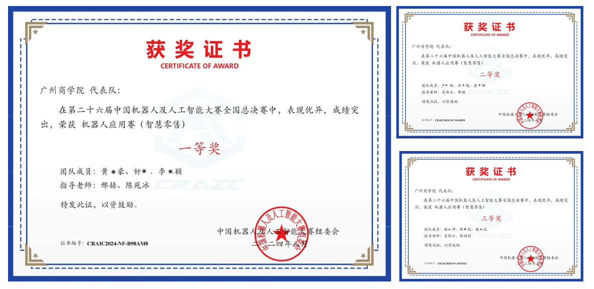 获2024年第二十六届中国机器人及人工智能大赛一等奖1项、二等奖2项和三等奖3项